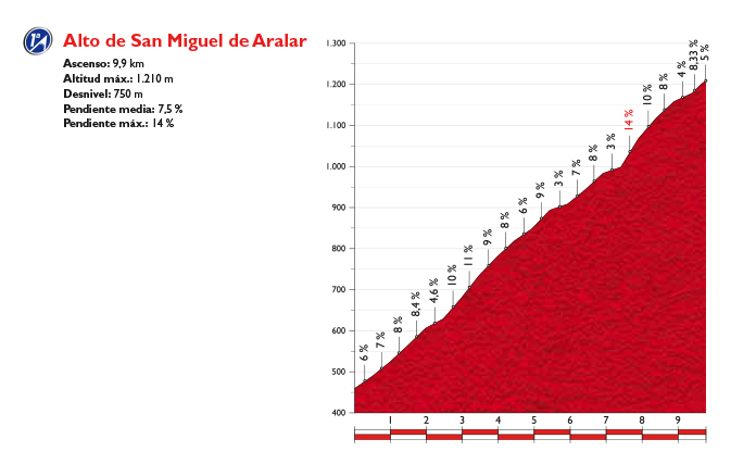 L'altimetria dell'Alto de San Miguel de Aralar, salita decisiva dell'undicesima tappa dell Vuelta