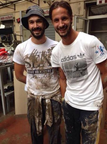 Luca Antonini mentre aiuta gli abitanti di Genova dopo l’alluvione