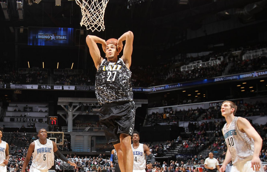 LA PARTITA – Partita giocata con minutaggio europeo: due tempi da 20 minuti ciascuno e non 4 periodi da 12 minuti come da regolamento Nba. Quintetti davvero interessanti ai nastri di partenza, con il “Resto del Mondo” che schierava Andrew Wiggins, Rudy Gobert, Giannis Antetokoumpo, Dennis Schroeder e Nikola Mirotic opposti a Victor Oladipo, Nerlens Noel, Cody Zeller, Elfrid Payton e Kentavious Caldwell-Pope. Gara che si apre subito all’insegna dell’equilibrio, con un Nikola Mirotic (16 punti) micidiale al tiro da 3 nel primo quarto (4/4) e trascinatore dei suoi nella prima parte di gara. Gara che ovviamente latita di “impegno difensivo” e ciò consente ai giocatori in campo di offrire giocate spumeggianti e sensazionali, in vero e proprio spirito “All-Star Game”. Team Usa ha nelle sue fila Victor Oladipo (22 punti) che con 8 punti di fila consente ai suoi di rimanere a contatto con il Resto del Mondo, che a fine primo periodo conduce 69-67. Nella seconda parte la ricerca continua del tiro da 3 e dell’assist smarcante premia gli “stranieri”, che grazie ai neo-entrati Bojan Bogdanovic (idolo dei tifosi di casa) e Gorgui Dieng vola sul 107-100 a 5′ dalla fine. Nel mezzo è da segnalare una giocata fantastica di Rudy Gobert, il quale stoppa veementemente il malcapitato Robert Covington facendo partire un contropiede che si conclude con una devastante schiacciata sempre ad opera del francese. Team Usa torna a -2 grazie ai canestri di Zach LaVine (22 punti anche per l’altro rookie di Minnesota), ma il compagno di squadra Wiggins decide la gara grazie ad un gioco da 3 punti che riporta in sicurezza (115-109 a 85″ dalla fine) il “Resto del Mondo”. Il finale è tutto firmato da Gobert, che prima stoppa Plumlee e poi a 1′ dalla fine sfrutta un rimbalzo d’attacco per mettere fine alla contesa sul 121-112. “Resto del Mondo” che ha meritato ampiamente la vittoria, grazie ad una compattezza decisamente maggiore rispetto a Team Usa, spesso trascinata da giocate fin troppo individualiste e sempre alla ricerca del canestro spettacolare.