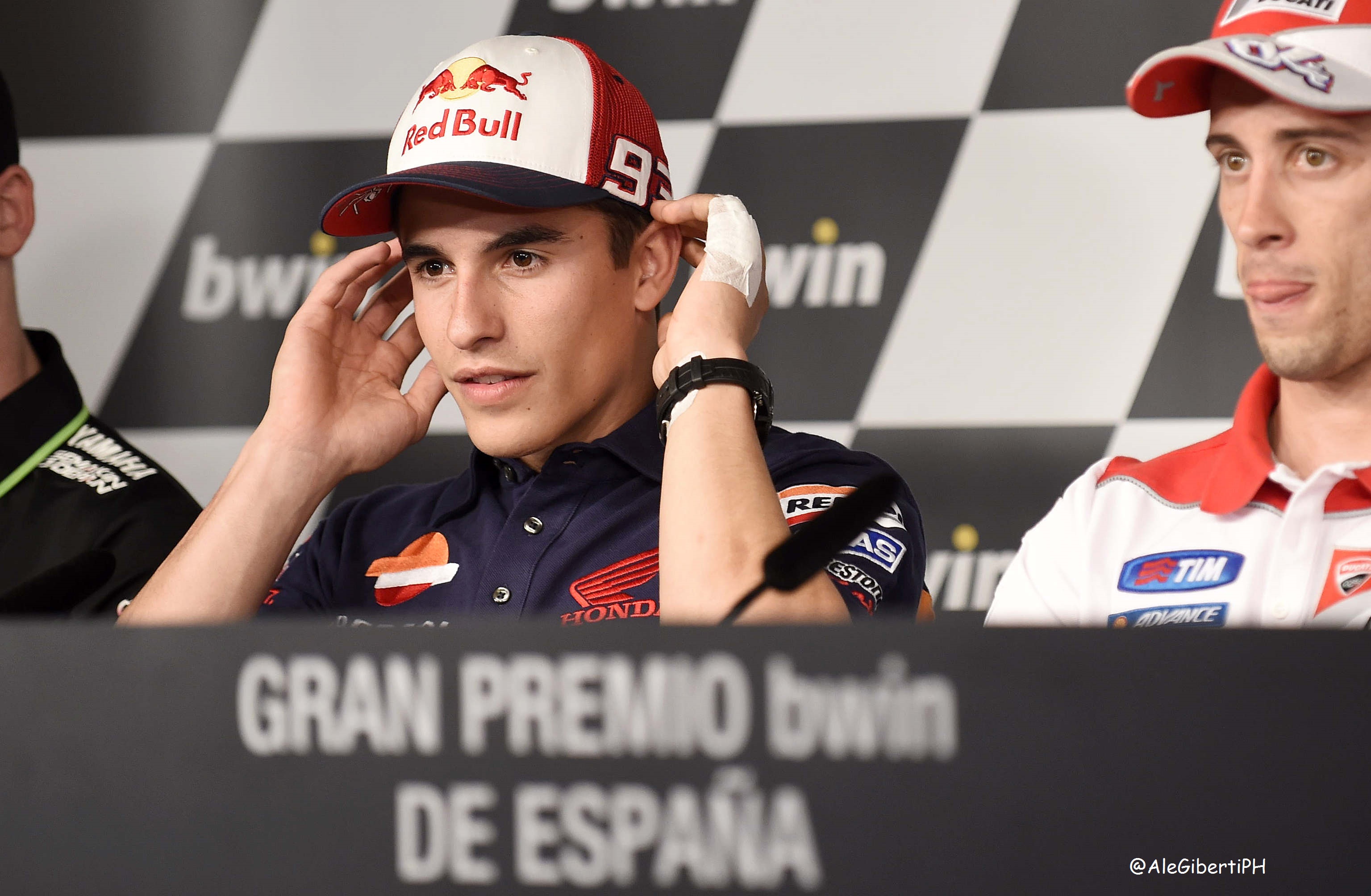 Marc Marquez– Molto atteso il campione in carica sopratutto dopo l’infortunio di sabato scorso in allenamento (intervento al mignolo sinistro) e il “zero tituli” in Argentina per incrocio di traiettoria con Rossi. Il team Repsol Honda rischiava di dover far correre a Jerez due collaudatori se Marc non potesse gareggiare, l’altro pilota ufficiale Dani Pedrosa, non è ancora pronto al rientro come si può leggere dal suo blog personale. In conferenza stampa, Marc dichiara:”A pensarci bene, sono stato comunque fortunato a farmi male solo al mignolo, in modo da essere qui oggi; domani proverò a scendere in pista, l’operazione risale a sabato scorso. Non potevo perdermi l’affetto dei fans, loro ci daranno la giusta motivazione. Credo che in Argentina avevamo una buona strategia, ma Valentino era troppo forte. Le corse sono così ed io ho imparato da quest’episodio. E’ stato un incidente di gara. Non un mio errore, quindi continuerò con il mio stile e approccio di sempre”. Nonostante la calma apparente, il “piccolo diavolo” sa che non può permettersi ulteriori risultati simili se vuole difendere il suo titolo di Campione del Mondo.