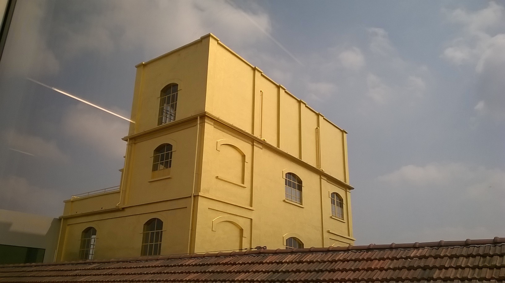 ” Haunted House ” già da lontano fa scaturire una riflessione. E allora cosa c’è di più materiale e rassicurante di una foglia d’oro per coprire l’immateriale e l’inquietudine? E’ il caso non solo della Haunted House tutta d’oro compresi infissi e grondaie,della nuova sede della Fondazione Prada (largo Isarco 2, aperta dal 9 maggio tutti i giorni dalle 10 alle 21, ingresso 10€, gratuito sotto i 18 e sopra i 65 anni ) che viene consacrata come nuova mecca dell’arte internazionale con gli edifici preesistenti e tre nuove costruzioni in dialogo tra loro nel sempre amabile gioco degli opposti, dal cemento alla pietra, dai sampietrini in legno contro quelli tradizionali, dall’oro alla ruggine. Se poi all’interno di Haunted House salite nell’elevatore a gabbia fino al quarto piano vedrete attraverso la grata il rincorrersi delle scale in pietra, le strutture portanti in ferro e in acciaio fino al legno del controsoffitto e alle vetrate che si allargano su Milano vista dall’alto con la sua rassicurante Torre Velasca.