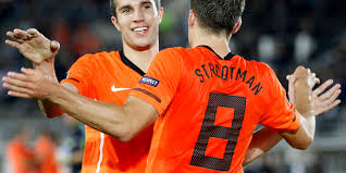 Van Persie e Strootman con la maglia dell’Olanda. I due potrebbero ritrovarsi nella Roma nella prossima stagione.