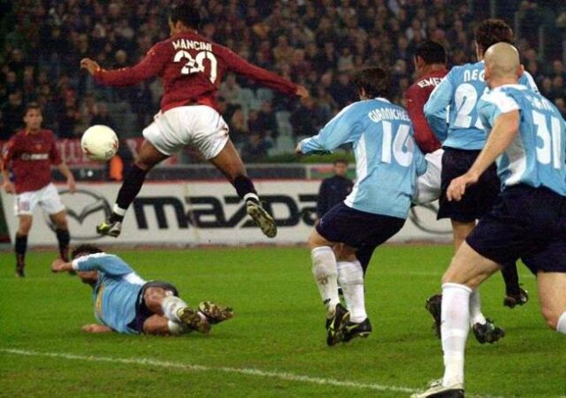 IL TACCO DI DIO – Stagione 2003/04, derby di andata. C’è ancora Capello sulla panchina della Roma, a guidare una squadra splendida, che si giocherà lo scudetto fino alla fine con il Milan (giungendo puntualmente seconda, come da tradizione degli ultimi 15 anni). Match bloccato fino all’81’, quando Amantino Mancini raccoglie una punizione battuta di Cassano con un tacco volante meraviglioso, che non lascia scampo a Peruzzi. Un gesto passato alla storia come “Il tacco di Dio”. Per un derby così, si può scomodare chiunque.