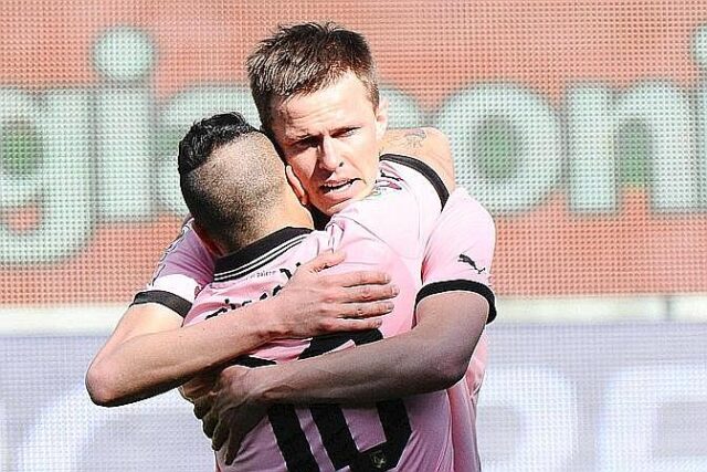 PRIMO TEMPO – Dopo una fase di studio la partita si vivacizza, il Palermo beneficia di due calci d’angolo di seguito non sfruttandoli bene e la Samp prova a far male in ripartenza. Al 22° minuto lo sloveno Ilicic si lancia in un’inebriante serpentina per 60 metri di campo e serve il capitano Fabrizio Miccoli che tira con il sinistro che è il suo piede meno nobile, interviene Romero su una conclusione a dire il vero non irresistibile. Al 27° altra occasione per il Palermo che va al tiro con Edgar Barreto che per poco con un siluro non inquadra la porta difesa dal portiere della Samp. Si vede la samp al minuto 29, Costa crossa dalla sinistra e Icardi schiacia troppo di testa, Benussi interviene tranquillamente. Al 34° il Palermo passa in vantaggio con un goal rocambolesco di Steve Von Bergen; Miccoli lancia un’ottima palla da metà campo sul palo lontano,con la palla che sembra destinata ad uscire arriva lo svizzero che con un tocco sporco mette in rete la palla che entra con uno stranissimo effetto. Al 42° pareggia la Sampdoria con uno stacco di testa di Gianni Munari su calcio d’angolo battuto teso al centro dell’aria piccola.