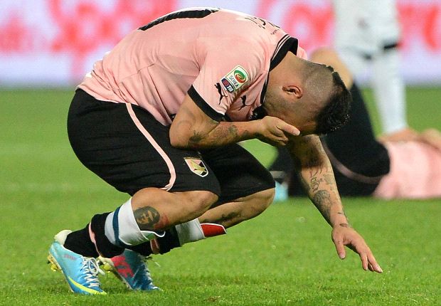 SECONDO TEMPO – Tramortiti da questi 10 minuti di fuoco i giocatori del Palermo scendono in campo per gli ultimi 45 minuti di serie A. La partita offre qualche sussulto ogni tanto come al 16 minuto in cui Belfodil mette a segno la sua personale doppietta, il goal però è annullato. Ecco la scena madre di questo grande spettacolo. Minuto 31 del secondo tempo, calcio di punizione per il Palermo. Va Miccoli che insacca il goal e si dirige sotto la curva, commosso e amareggiato bacia lo scudetto e la maglia poi, mestamente, ritorna a centrocampo. Il Palermo esce di scena tra i fischi del pubblico e tra qualche timido applauso.