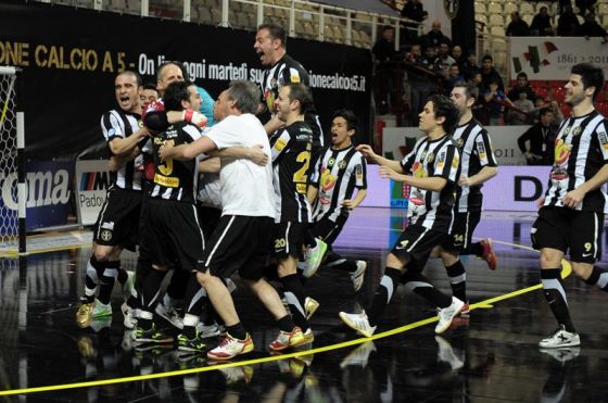 IL SOGNO E’ REALTA’ – La Marca si laurea così campione d’Italia 2012/13. Un risultato sorprendente e inaspettato, anche alla luce di quanto visto durante l’arco della stagione. I trevigiani infatti avevano concluso l’annata al quinto posto, un piazzamento non proprio ideale in ottica playoff scudetto. I bianconeri sono però riusciti a sovvertire tutti i pronostici e hanno sopperito anche all’handicap del fattore campo: ai quarti di finale infatti la Marca ha avuto la meglio del Cogianco Genzano, quarto in classifica, e in semifinale ha compiuto una vera e propria impresa eliminando l’Asti, dominatrice assoluta della regular season. Il resto è storia recente: non sono servite neppure le eventuali gara-4 e gara-5 per decretare la squadra campione d’Italia 2012/13. E poco importa se in campionato la Luparense, seconda in classifica al termine del torneo, abbia surclassato 5-1 la Marca in trasferta e pareggiato 3-3 al ritorno tra le mura amiche. I trevigiani hanno saputo rifarsi con gli interessi. Considerando che anche la scorsa stagione le due squadre si erano affrontati nella finale scudetto, con la Luparense che la spuntò soltanto in gara -5. Quest’anno però è stata la Marca ad avere la meglio, e gran parte del merito va anche a Julio Fernandez. Il tecnico, dopo aver vinto lo scorso anno il titolo alla guida della Luparense, questa stagione è riuscito nell’impresa di ripetersi sulla panchina della Marca. Nessun allenatore infatti era riuscito a vincere lo scudetto due anni di fila in due club diversi. Fino a pochi minuti fa.