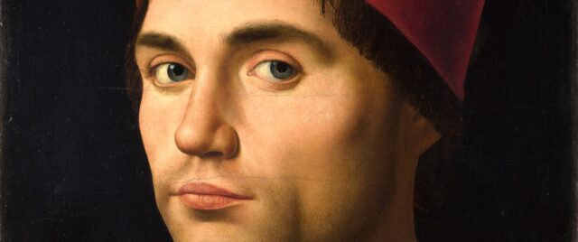 ANTONELLO E LA PITTURA FIAMMINGA – Antonello è il pittore che introdusse in Italia, nel Quattrocento, la pittura ad olio, probabilmente appresa durante un soggiorno nelle Fiandre, dove i fiamminghi facevano già uso di questa tecnica artistica. Anche per questo, Antonello, può essere considerato un autentico rivoluzionario, un vero innovatore. Giorgio Vasari, nelle sue Vite, ci descrive il percorso formativo di Antonello, non trascurando la (probabile) esperienza fiamminga del maestro siciliano, in questi termini: «Ora, avendo un Antonello da Messina, persona di buono e desto ingegno ed accorto molto e pratico del suo mestiero, atteso molti anni al disegno in Roma, si era prima ritirato in Palermo e quivi lavorato molti anni, ed in ultimo a Messina sua patria; dove aveva, con l’opere, confermata la buona opinione che aveva il paese suo della virtù che aveva di benissimo dipingere. Costui, dunque, andando una volta per sue bisogne di Sicilia a Napoli, intese che al detto re Alfonso era venuta di Fiandra la sopraddetta tavola di mano di Giovanni di Bruggia, dipinta a olio per sì fatta maniera, che si poteva lavare, reggeva ad ogni percossa, ed aveva in sé tutta perfezione […] messo da parte ogni altro negozio e pensiero, [Antonello] se n’andò in Fiandra; e in Briggia pervenuto, prese dimestichezza grandissima col detto Giovanni».