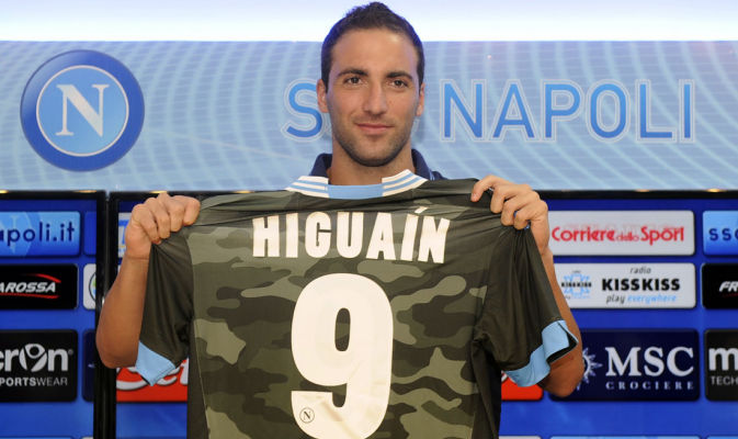 Gonzalo Higuain con la maglia del Napoli, nel giorno della presentazione: potrebbe andare via dopo pochi mesi!