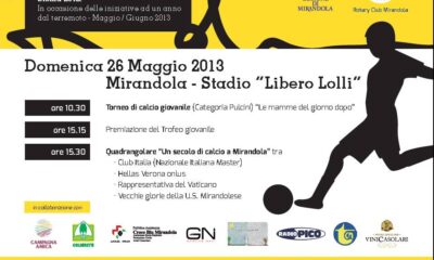 MIRANDOLA, 24 MAGGIO – Domenica 26 Maggio lo Stadio “Lolli” di Mirandola ospiterà una giornata interamente dedicata al calcio per ridare speranza ad una città che,...
